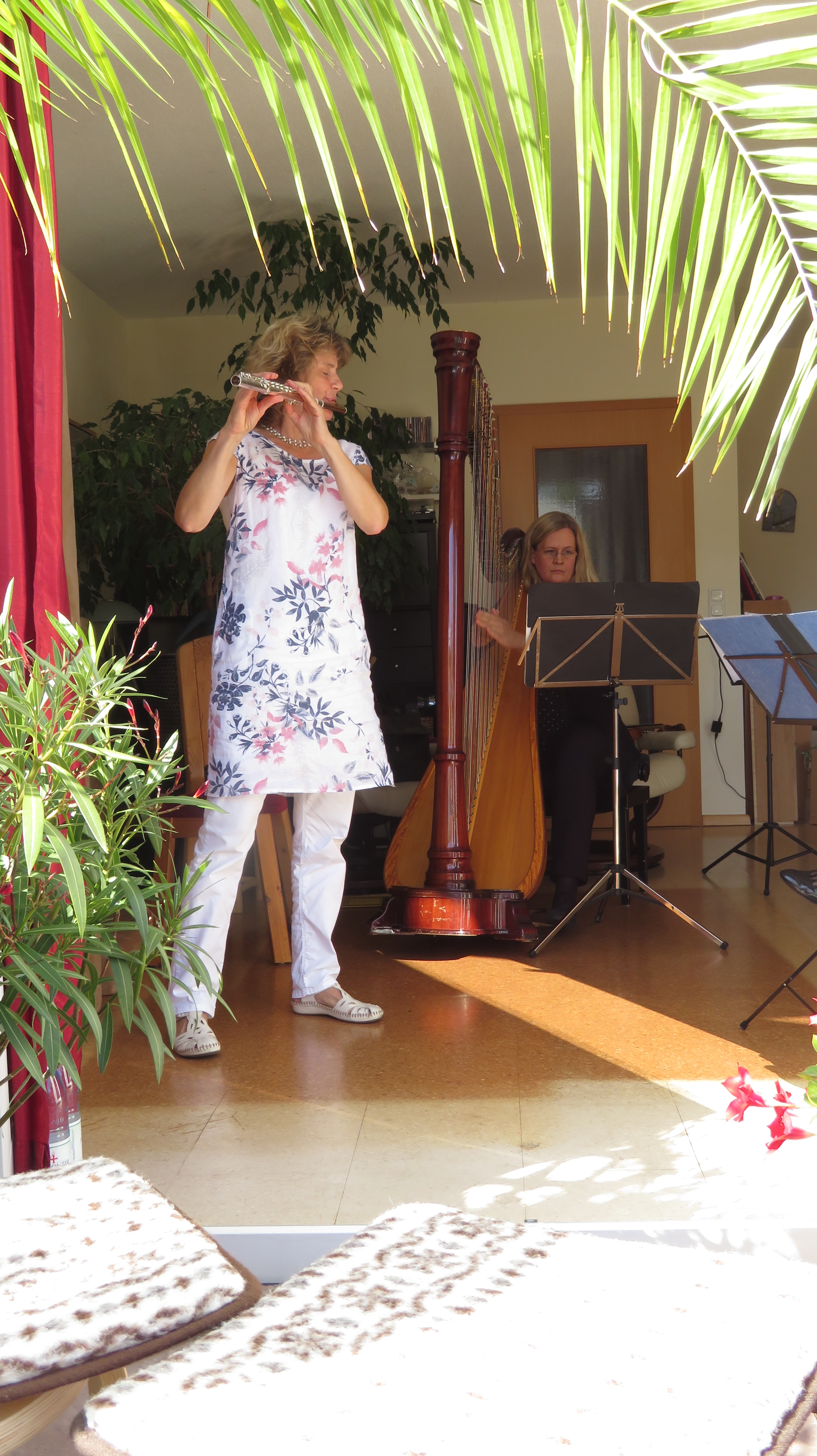 Freunde-Radiophilharmonie-Hannover-Hauskonzert-Garten-2019-Duo-Flöte-Harfe-Dagmar-Mogwitz